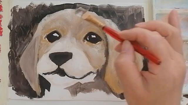 Рисуем щенка и передаём эмоции Гуашь. Рисование для начинающих. Рисуем с Любовью