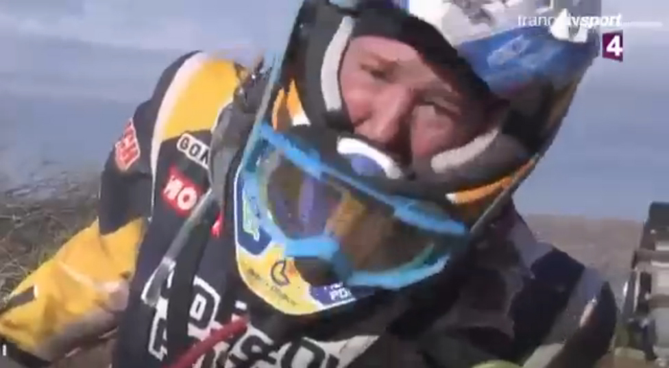 Нифонтова в слезах просила оператора помочь, но представителям СМИ запрещено вмешиваться. Участница ралли «Дакар-2017» россиянка Анастасия Нифонтова не смогла поднять свой мотоцикл после падения и обратилась к соперникам с просьбой о помощи. Единственным, кто помог ей, стал французский мотогонщик Грегори Морат.На видео, которое снял оператор одного из каналов, обессилевшая россиянка безуспешно пытается самостоятельно поднять мотоцикл. Нифонтова в слезах просила оператора помочь, но представителям СМИ запрещено вмешиваться.Тогда россиянка стала просить о помощи соперников. Несколько гонщиков проехали мимо нее, но Морат остановился, помог ей, дружески похлопал девушку по спине и продолжил путь.После 11-го этапа ралли Нифонтова поднялась на 75-ю строчку в общем зачете.