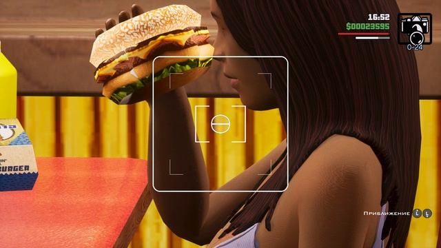 GTA SA. Прислоняет гамбургер к левой щеке