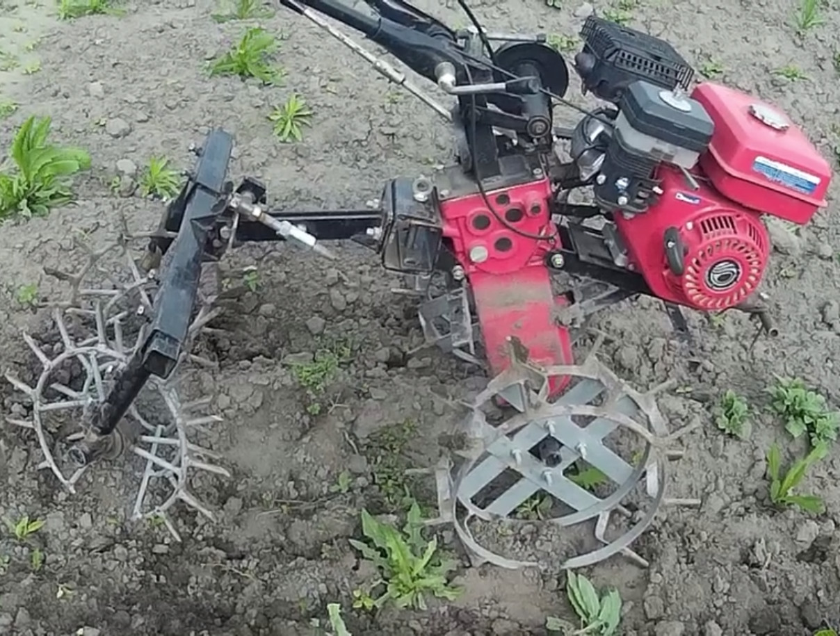 Вытаптываем сорняки мотоблоком.