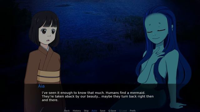 Play Here:https://krispycat.itch.io/mermaid-flesh?download Chiyoko, a young maid, is sent to bring a piece of mermaid flesh for her employer, so he may live forever. She's not expecting a mermaid to actually leave the lake and speak to her. Depending on her choices, there's a lot she may not expect tonight...
