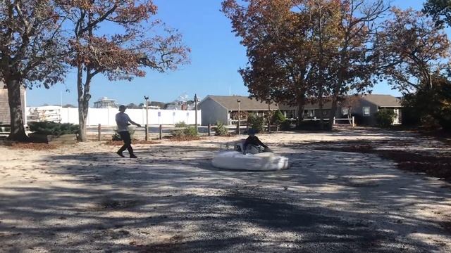 Justin tests the 'Pegasus' Hovercraft design on Frothingham Way and the Bass River Yacht club in South Yarmouth MA