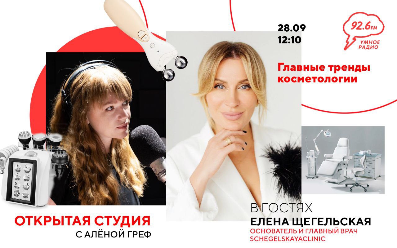 ? Четверг, 28 сентября, в 12:10 программа "ОТКРЫТАЯ СТУДИЯ" с Алёной Греф. Гость эфира: Щегельская Елена - основатель и главный врач SchegelskayaClinic, врач дерматокосметолог 1 категории, эксперт Альтеротерапии, лауреат премии Парад Клиник 2021, 2022года Тема эфира: «Главные тренды косметологии». Разберемся в актуальных трендах и антитрендах косметологии 2023 года. Слушайте нас в FM диапазоне 92.6 и в мобильном приложении «SILVER RAIN» ☔️ Наш Telegram: https://t.me/silverstav Наш ВК: https://vk.com/silver_rain_stav