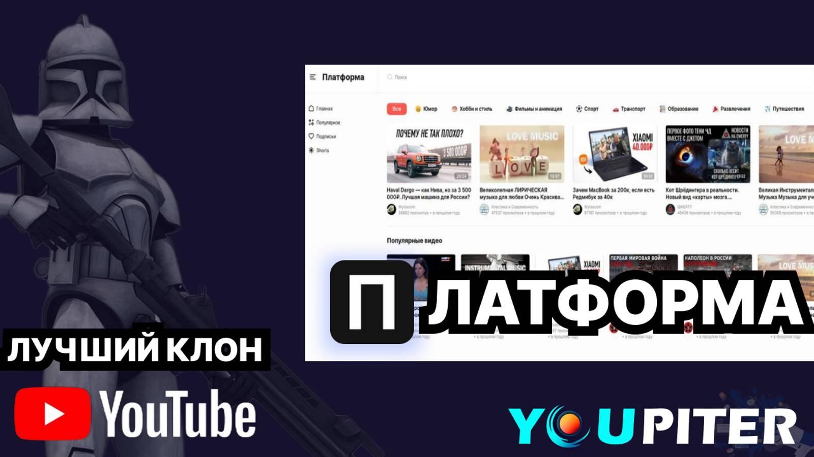 ПЛАТФОРМА - ЛУЧШИЙ КЛОН YOUTUBE! ✅ Обзор видеосервиса "Платформа" 2024 г. ========================================================== ➡ Обзор видеосервиса "VK Видео": https://youtu.be/y10LkrqkLHM ➡ Обзор видеосервиса "Rutube": https://youtu.be/CEE0s6y2mGE ➡ Мой канал в YouTube: https://www.youtube.com/@youpiter1259 ➡ Мой второй канал в YouTube: https://www.youtube.com/@UCE1U0TSyVF9aSBwH7jOVFKw ➡ Мой канал в Яндекс Дзен: https://dzen.ru/youpiter1259 ➡ Мой канал в Rutube: https://rutube.ru/channel/38770246/ ======================================================== ✅Приятного просмотра!✅ #Платформа #Platform #Клон #КлонЮтуба #ОтечественнаяПлатформа #ОтечественныйАналогYouTube #АналогYouTube #YouTube #АналогЮтуб #Ютуб #Эксперимент #Видеосервис #Videoservice #Видеохостинг #Videohosting #Видеоплатформа #Обзор #Рекомендации #Рек #Лайк #Топ #подписка #комментарии #like #rec #recommended #like #top #subscribe #comment #commentary #коммент
