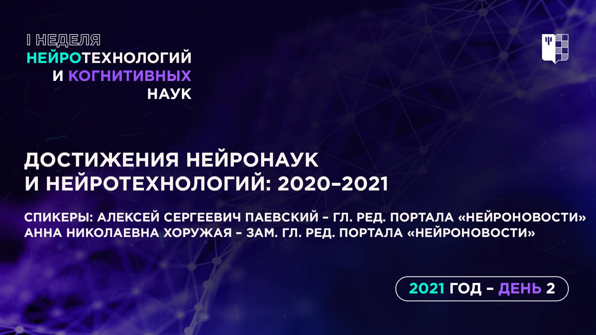 Второй день Недели нейротехнологий и когнитивных наук в Москве Достижения нейронаук и нейротехнологий: 2020-2021 Алексей Сергеевич Паевский - гл. ред. портала "Нейроновости", Анна Николаевна Хоружая - зам. гл. ред. портала "Нейроновости"