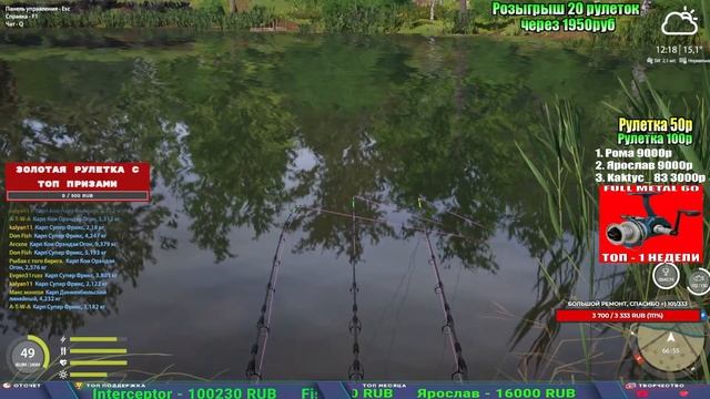 Поддержка донатом https://new.donatepay.ru/@1032463 Альтернативный донат https://www.donationalerts.com/r/kalyamba11 5536913964533059 карта Тинькоф Если стрим лагает,смотри стрим на трово https://trovo.live/s/Kalyamba_na_Ribalke Тг https://t.me/kalyamba_na_ribalke Мой ВК - https://vk.com/kalyantv НИК в игре kalyan11 НАШ ДС https://discord.gg/4ZzSQkQtsK Заказ водоема на 1 час - 500р ( весь стрим 2500р ) Модерка на канале 1300р ( каждая следующая на 100р больше) ✅Призы в рулетке "ЗОЛОТАЯ" 500р ✔ ЗОЛОТО ✔ ПРЕМ ✔ КАТУШКИ РАПТОР 40, ВЕНГИ, ТАЙГА, СИЛЬВЕР 80, И другие ✔ ПАЛКИ ПИЛКЕРНАЯ, ДОНКА МОРСКИЕ, ✔ РОД ПОД, СТУЛЬЯ ✅Призы в рулетке СТАНДАРТ : 100р ✔ катушкИ РАПТОР 40, ВЕНГИ, ТАЙГА, СИЛЬВЕР 80, И другие ✔ катушки 60 для медного ( ЭВИИ, НАТОРЫ, ГОЛДА, и тд) ✔ ПИЛКЕРНОЕ УДИЛИЩЕ КОРОЛЕВА ОКЕАНА ✔ Морское Донное удилище ✔ прем ( 3, 7, 30 дней) ✔ золото ( 1, 3, 5, 10, 20 ,50) ✔ билет на море ( 1, 3, 5 дней) ✔ голд наживка и др. ✅Призы в рулетке "СТАРТОВАЯ" 50р ✔ катушка Венга ✔ катушка "silver80" ✔ катушка "БЕЛЫЙ КАЛИБР" ✔ катушка "Черный калибр" ✔ катушка "Протон" ✔ катушка "Нарга 6000" ✔ Набор Фидерист и спинингист ✔ Карповик Фортуна ✔ фидерные удилища ✔ прем, золото, алкашка, наживки и тд P.s Рулетка это не казино, а награда за поддержку стримера. Вечный ТОП ПОДДЕРЖКИ (10.06.2025) 1. Леха сварной 214 572 2. Dimon_pokemonchik 127 034 3. Skreb79 103 061 4. Interceptor 96 230 5. FishRus86 82 500