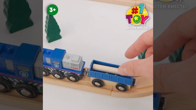 1TOY Goodok наб. ж/д базовый "В добрый путь!" с синим дерев.грузовым локомотивом с вагоном с 3 бревнами,16 дет.,кор.