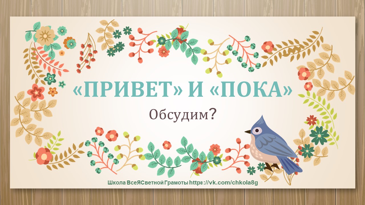 В этом видео мы поговорим о таких словах как "Привет!" и "Пока!" с точки зрения ВсеЯСветной Грамоты. Автор видео - Татьяна Константиновна Б.-С. Страница в ВК - https://vk.com/tkbaiko8a Школа ВсеЯСветной Грамоты в ВК https://vk.com/chkola8g Литература и обучающие курсы по ВсеЯСветной Грамоте https://vk.com/lavkagramotew Для тех, кто хочет выразить благодарность автору видео и поспособствовать развитию канала: Сбербанк: 2202206172325172 МИР (Татьяна Константиновна С.) ГазпромБанк: 2200011808355474 МИР (Татьяна Константиновна С.)