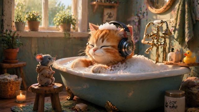 Спокойная мяу-песня для кошек и людей с атмосферой тёплой ванны и домашнего релакса. Кошка в наушниках наслаждается водой и пузырьками, а мышка рядом наблюдает за её спа-настроением. Подходит для отдыха, расслабления и мягкого вечернего фона.