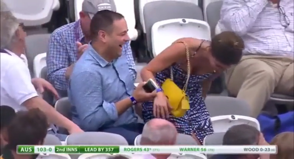 На стадионе в перерыве матча девушка увидев себя на экране,засмущалась и шлёпнулась мимо стула, муж поржал) #прикол #ржака #спорт #девушка #фейл