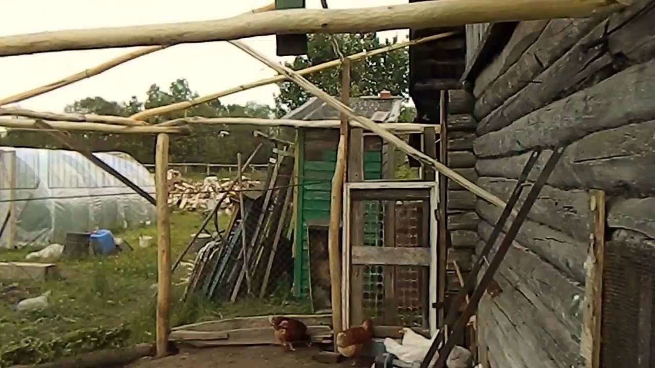 Соорудил на скорую руку легкий навес для кур из подручных материалов, для защиты от дождя и солнца.