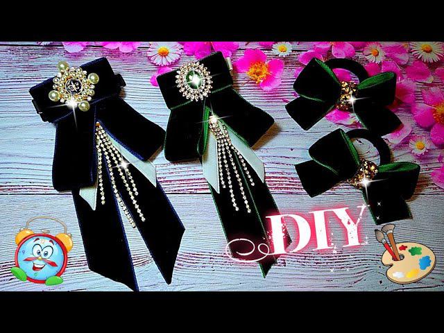 Стразовая подвеска СВОИМИ РУКАМИ МК галстук-брошь из бархатной ленты