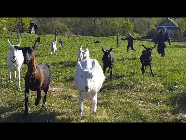 Прогулка с козами и детьми) Сено закончилось! Чиним трубу...