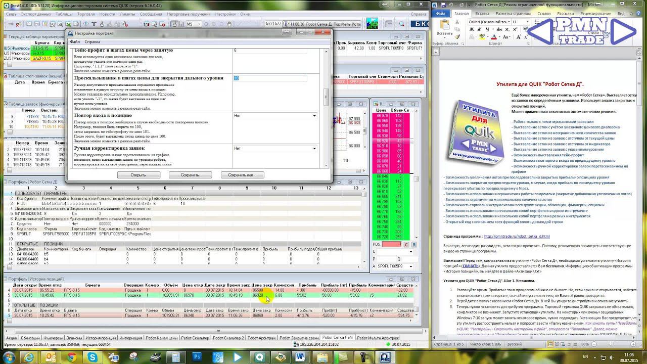 Утилита для QUIK "Робот Сетка Д". Настройка.