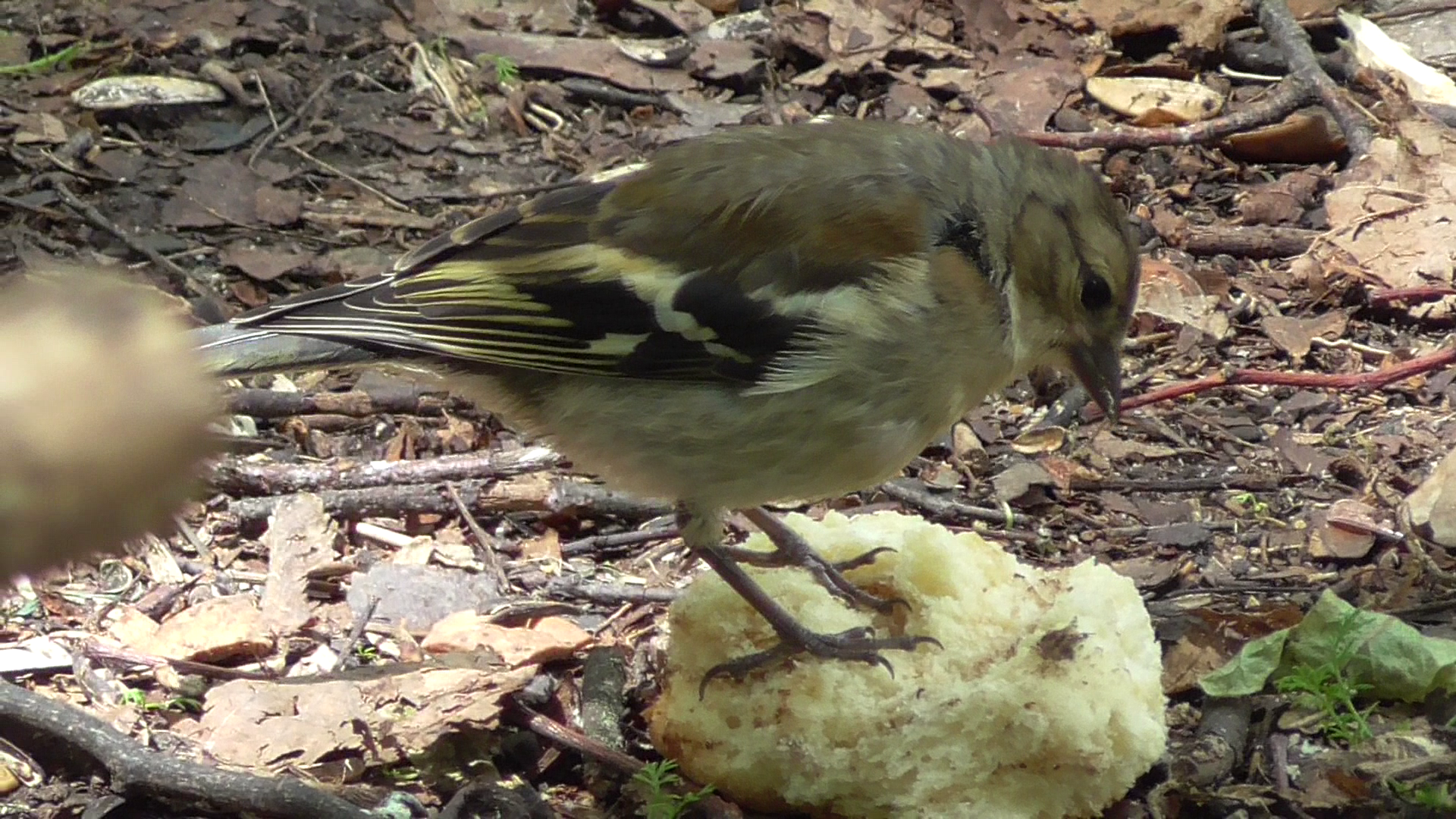 Птица в парке и булка