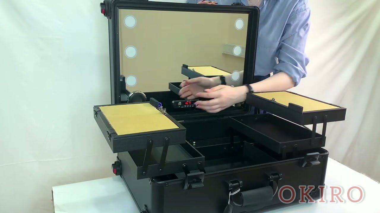 Мобильная студия для визажиста незаменимая вещь для мастеров, работающих на выезде. Данная модель имеет большое зеркало и мощную диодную подсветку из 6-ти ламп, что позволяет качественно осветить модель даже при дневном свете. Размер зеркала 47,5 х 35 см. Подсветка имеет три температурных режима: теплый 3000К, холодный 6500К и нейтральный. Управление температурой и яркостью света возможно с помощью панели с сенсорной кнопкой. Панель оборудована экраном и расположена в центральной нижней части зеркала, под экраном расположены кнопки управления. Управление с помощью 4 кнопок: увеличение/уменьшение громкости, включение/выключение, режим Радио. Остальные функции мультиплеера можно регулировать с помощью пульта ДУ. По центру расположен бокс со стеклянными дверцами на защелке. Размер бокса 33,5 х 26 х 12 см. Удобные полочки, расположенные в 2 уровнях, обеспечат комфорт мастеру в работе. Размер выдвижной полки 25,5 х 16,5 х 3 см 4 съемные телескопические ножки черного цвета обеспечат устойчивость студии. При транспортировке ножки собираются в черный бокс, расположенный внутри. Высота ножек регулируется. Возможно 4 варианта установки студии: 48 см, 75 см, 80 см, 85 см (указана высота от пола до нижней части студии). Съемные колеса черного цвета с оборотом в 360 градусов сохранят удобство при перемещении. На мобильной студии визажиста имеется два прочных боковых замка, в комплекте 2 ключа. Три ручки на корпусе, две с разных сторон и одна выдвижная. Ручка выдвигается на 50 см. Пластиковые ножки для установки студии на поверхности расположены с двух сторон студии. С двух сторон на стенках расположены резинки с 6 отделениями для закрепления кистей или аксессуаров. Внешний размер студии 53 х 40 х 23 см. Алюминий и МДФ самого высокого качества дадут возможность использовать студию долгое время, что немаловажно для профессионалов. Внутренняя и внешняя часть имеет черную матовую поверхность. Студия имеет дополнительные возможности подключения гаджетов к USB, подключение Bluetooth-колонки, многофункциональная розетка, Радио, слот для SD-карты. Динамики Bluetooth-колонки расположены в нижних углах на зеркале. Для подключения к колонке необходимо включить Bluetooth и найти в списке 606BT. Данная мобильная студия для визажиста станет вам хорошим и надежным помощником в выездных мероприятиях. Наши мобильные студии мы отправляем по всей России в специальной транспортировочной упаковке, которая гарантирует сохранность изделия при транспортировке. Если возникнут какие-то проблемы с товаром, Вы всегда сможете связаться с нами и мы с радостью поможем Вам в решении любой проблемы! Купить Мобильная студия визажиста без ножек LC011 Вы сможете на сайте нашего интернет магазина! Гарантия качества! Быстрая и квалифицированная доставка (наши партнеры по Москве: Интеграл курьерская доставка, по России: CDEK)! Недорого и по приемлемой цене!
