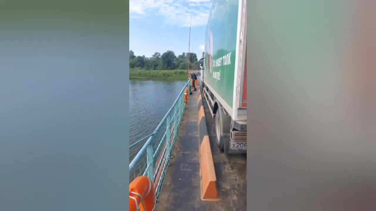Паром через Обь, вместе с грузовиком переправляется водитель АТП Новосибирск Дмитрий Филипов