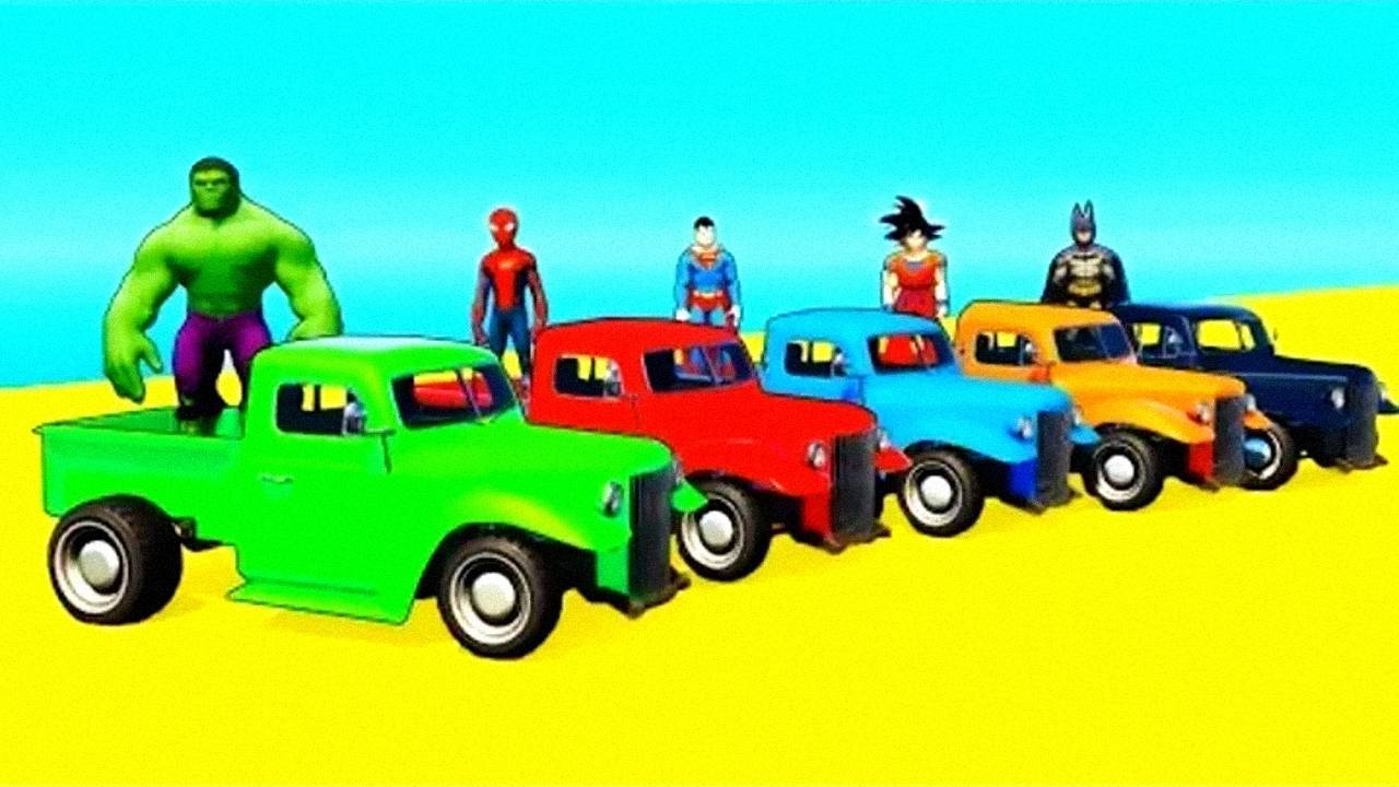 Мультик про Машинки для Детей Цветные Пикапы Бульдозеры и Супергерои с Человек Паук и Песенки
