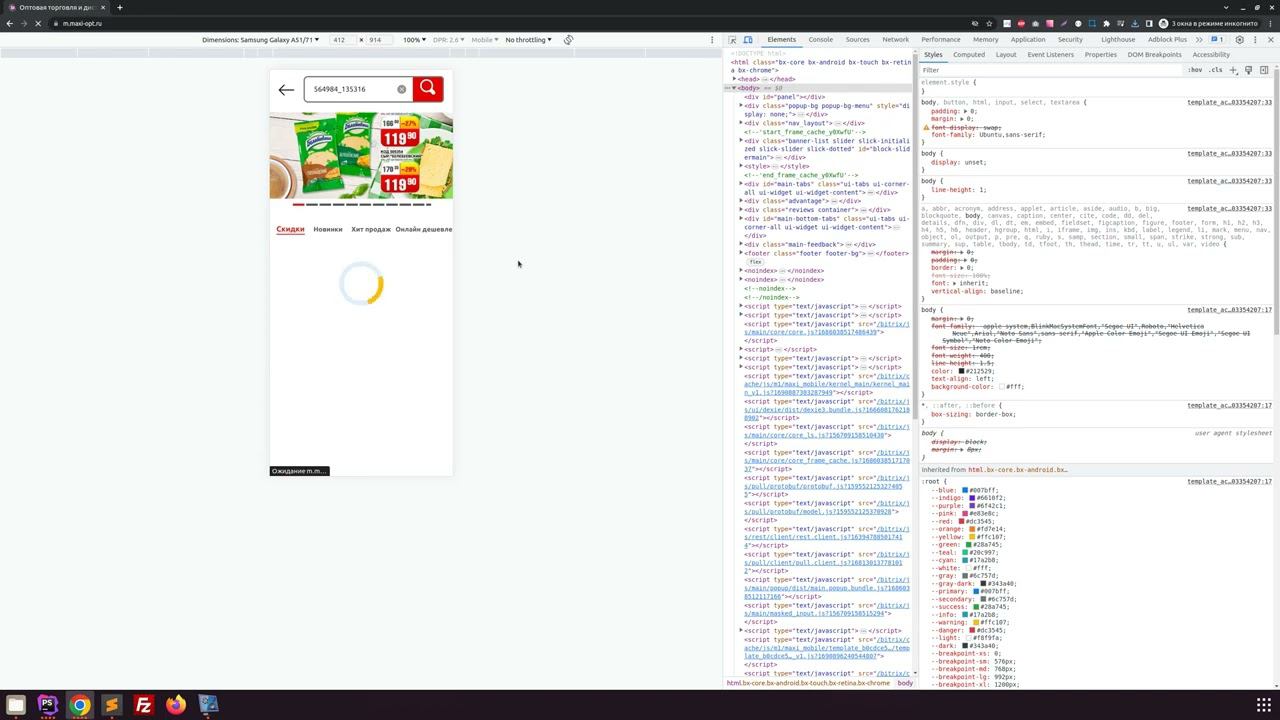 maxi БАГ Поиск На мобильной версии не отображается старая цена