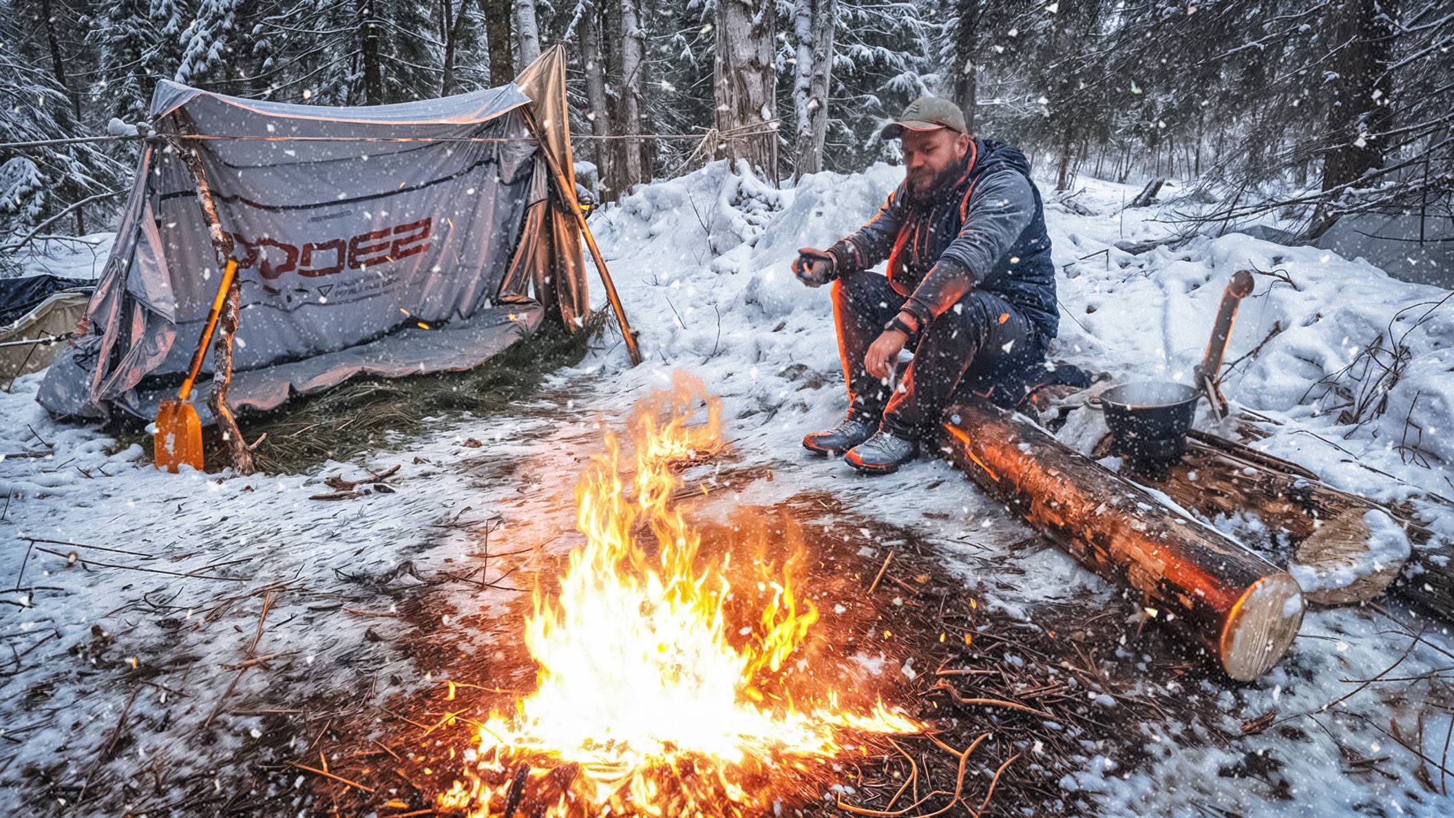ОСТАЛСЯ В ТАЙГЕ! ЗАВАЛИЛО СНЕГОМ | НОЧЬ У КОСТРА | СОБИРАЮ ШУЛЬТУ и ЧАГУ! Лесная кухня