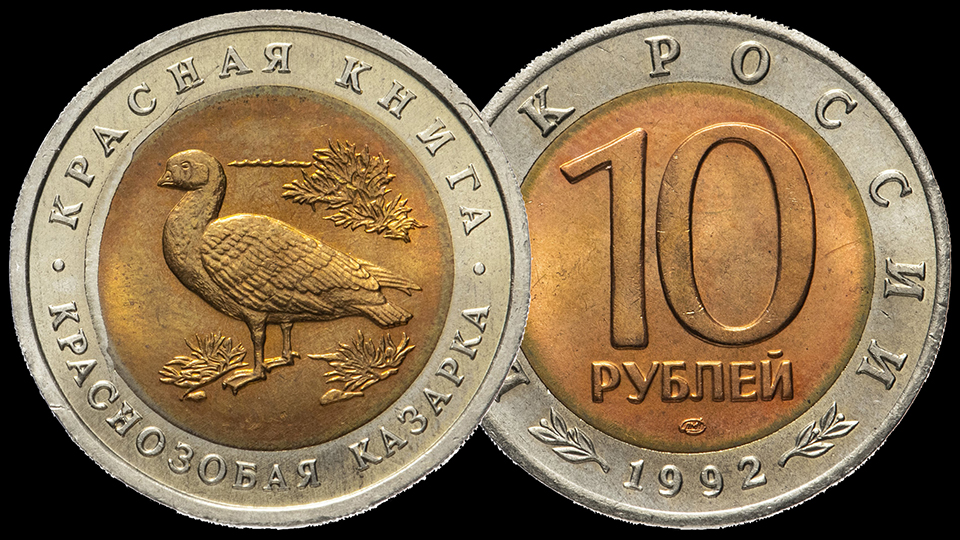 10 рублей из серии Красная книга. КРАСНОЗОБАЯ КАЗАРКА.