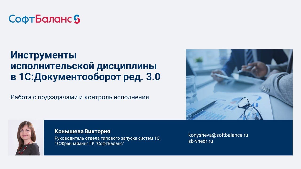 ГК "СофтБаланс" https://sb-vnedr.ru/ Инструменты исполнительской дисциплины. Контроль задач в 1С:Документооборот 3.0 1С:Документооборот https://sb-vnedr.ru/programm/1c-dokumentooborot/ Внедрение 1С:Документооборот https://sb-vnedr.ru/programm/1c-dokumentooborot-vnedrenie/ https://youtu.be/EO5pRhS6xE8