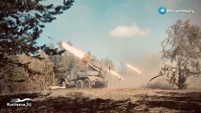 Реактивные системы залпового огня группировки "О" круглосуточно наносят артиллерийские удары по объектам украинских боевиков на Старобельском направлении. Систематически уничтожая склады, опорные пункты, а также скопления нацистов, работа артиллерии не дает тем, перейти в контрнаступление.
