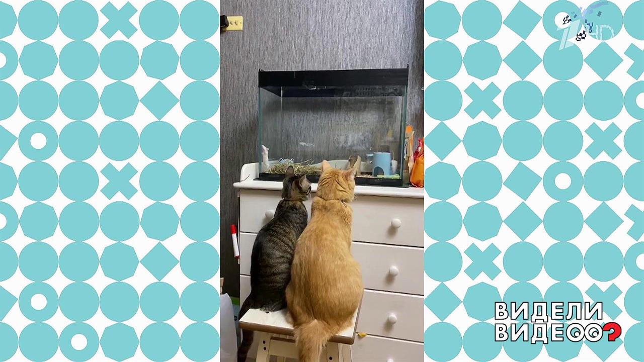 Коты Декстер и Рие готовы наблюдать за мышами в аквариуме весь день.