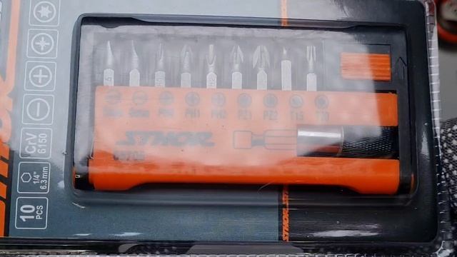 Товары из видео можно приобрести по ссылке: https://project8438743.tilda.ws/ Набор отверток STHOR 65705. Набор состоит из 9 штук бит: плоских: 5,6 мм, PHILLIPS: PH0,PH1,PH2,POZIDRIVE: PZ1,PZ2, TORX: T15,T20 и одного адаптера длиной 60 мм. Пескоструйные биты из стали 6150CRV