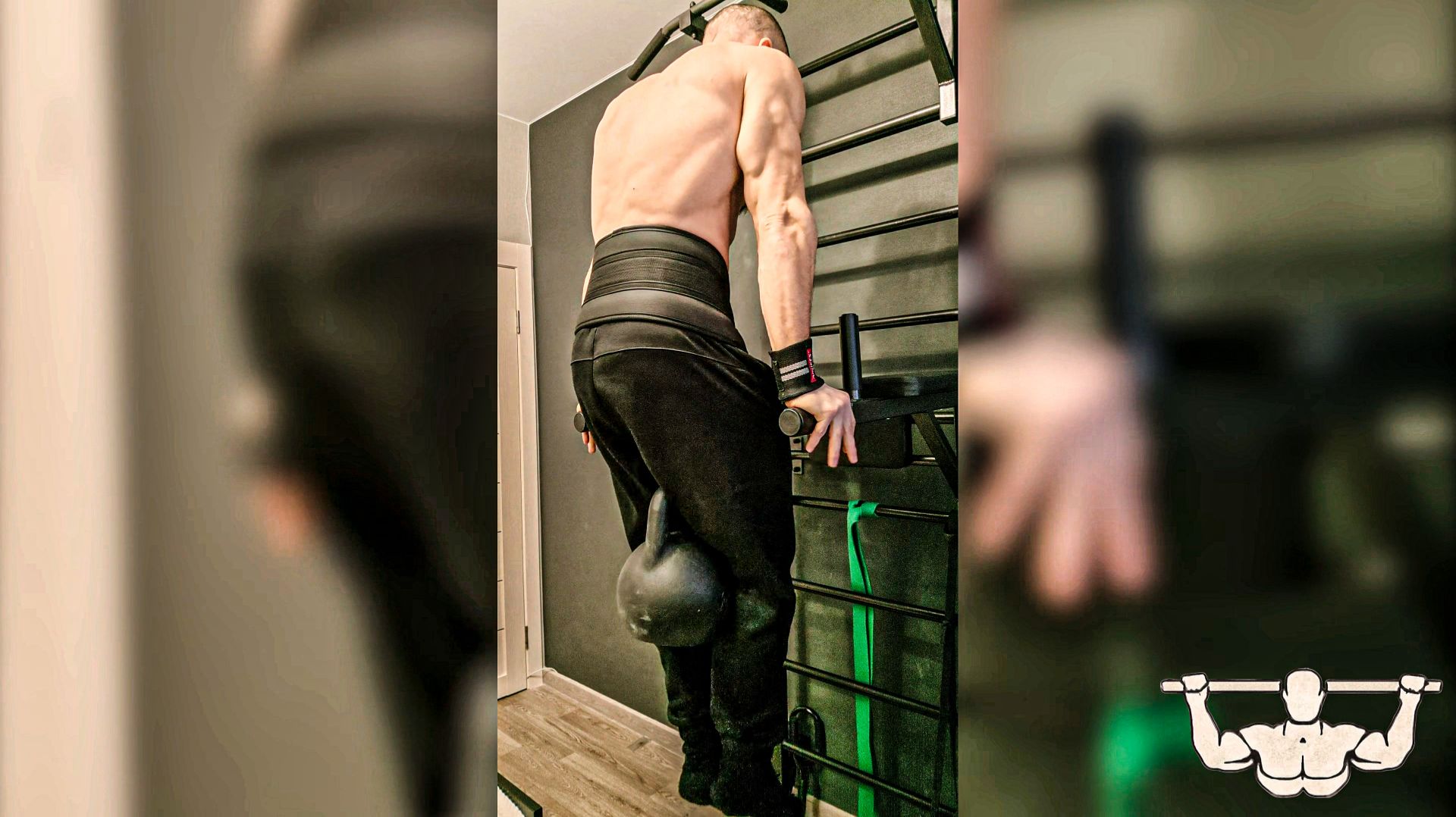 Дроп-сет на Брусьях с гирей +24кг в домашних условиях.