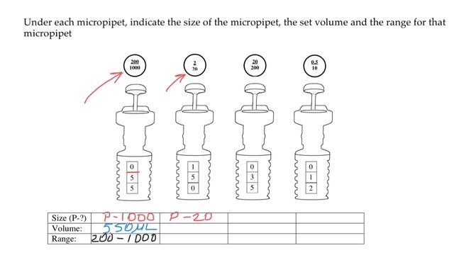 Micropipette reading and setting quiz