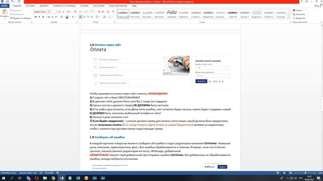 Обучение по навигации сайта + оплаты и транспортные