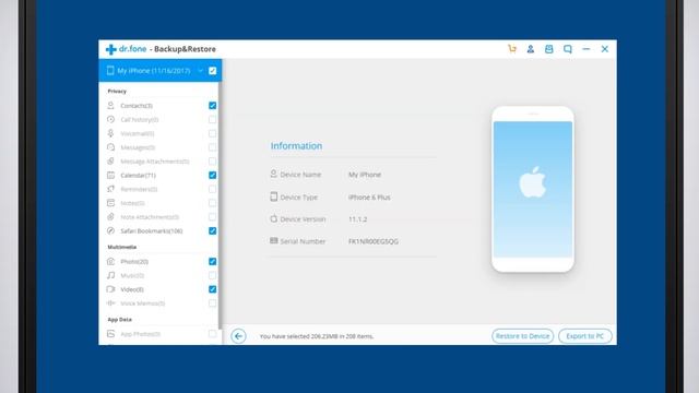 Wondershare Dr.Fone - Backup & Restore (iOS) - Backup Your iPhone/iPad Selectively
