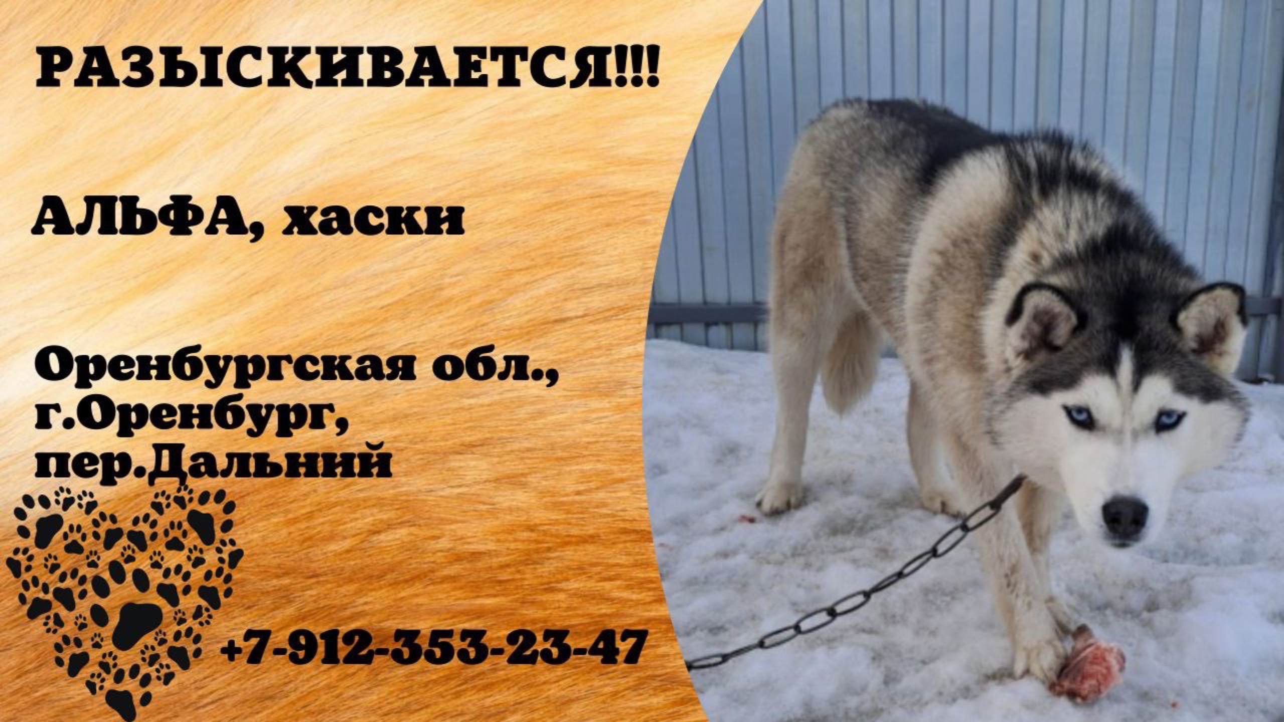 Пропала собака! АЛЬФА, хаски. Оренбургская обл., г.Оренбург.