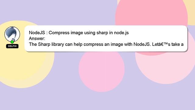 NodeJS : Compress image using sharp in node.js To Access My Live Chat Page, On Google, Search for "hows tech developer connect" As promised, I have a hidden feature that I want to share with you. This is a YouTube's feature which works on Desktop. First, Ensure that the video is playing before proceeding. After that, type the word 'awesome' on your keyboard. The progress bar on YouTube will be altered to a flashing rainbow. A brief introduction of myself, Hello, I am Delphi. I am here to provide you with assistance in answering your questions. NodeJS : Compress image using sharp in node.js I am available to answer your more specific queries, so feel free to comment or start a chat. Your input is valuable, so please comment below if you have an answer or any insights to the answer. Providing an answer will be acknowledged and appreciated with a 'heart' from me. using in image NodeJS : sharp node.js Compress