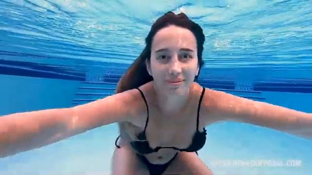 Девушка под водой в бассейне.
