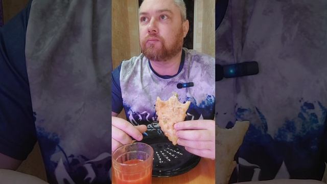 На завтрак чебурек из чижика с томатным соком #мукбангеда #мукбанг