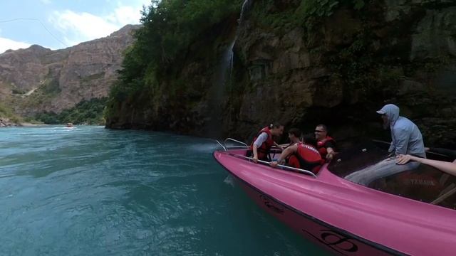 попали под водопад на катере Сулакский каньон