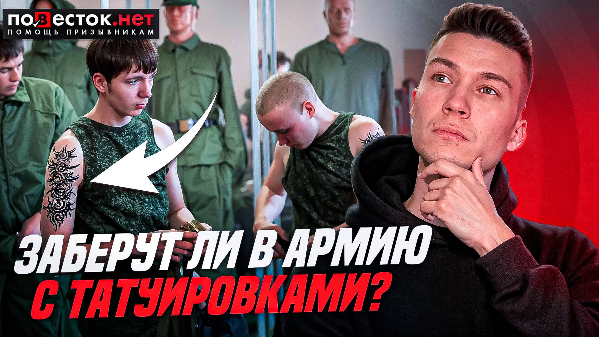 Компания Повесток.нет оказывает юридическую помощь призывникам. Нам задают вопросы об армии и о том, как получить освобождение от службы. Сегодня разберёмся, берут ли в армию с татуировками. Помогаем законно освободиться от службы в армии. Вы всегда можете получить бесплатную консультацию специалистов компании "Повесток.нет" по ссылкам ниже: https://povestok.net/ https://vk.com/vprizyve https://t.me/vprizyve 8-800-600-31-58 - бесплатная горячая линия для призывников! ____________________________ Наша компания не пропагандирует уклонение от военной службы и совершение действий, запрещенных действующим законодательством, так как это является нарушением ст. 21.5 КоАП РФ, а также ч.1 ст. 328 УК РФ. Мы признаем, что защита Отечества является долгом и обязанностью гражданина РФ согласно ст. 59 Конституции РФ #повестокнет #помощьпризывникам #военныйбилет #призывник #военник #военкомат #медицинскаякомиссия #осеннийпризыв #весеннийпризыв