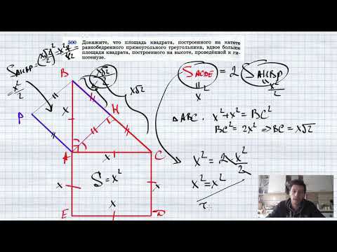 №500. Докажите, что площадь квадрата, построенного на катете равнобедренного прямоугольного треугольника, вдвое больше площади квадрата, построенного на высоте, проведенной к гипотенузе. TikTok - https://vm.tiktok.com/WJJwK9 Like - https://likee.com/user/@ge0metriya Мой второй канал для подготовки к ЕГЭ и ОГЭ - https://www.youtube.com/ЕвгенийСумин Инстаграм - https://www.instagram.com/EGE_OGE.math Личный инстаграм - https://www.instagram.com/ee_sumin VK - https://vk.com/evgeniysumin FB - https://www.facebook.com/EvgeniySumin