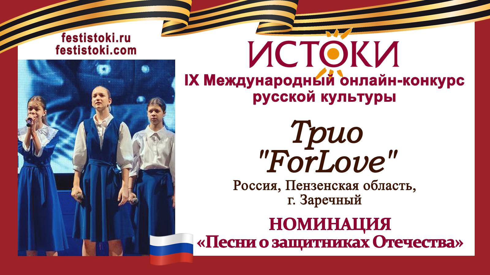 Участник IХ Международного онлайн-конкурса русской культуры "Истоки". Номинация "Песни о защитниках Отечества". Песня "Блокадный вальс". Слова Юлия Шестакова, Музыка Яна Вайновская. Сайт: festistoki.ru / festistoki.com E-mail: festistoki@mail.ru