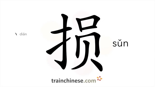 损 (sǔn) to damage; lose; harm; decrease; injure