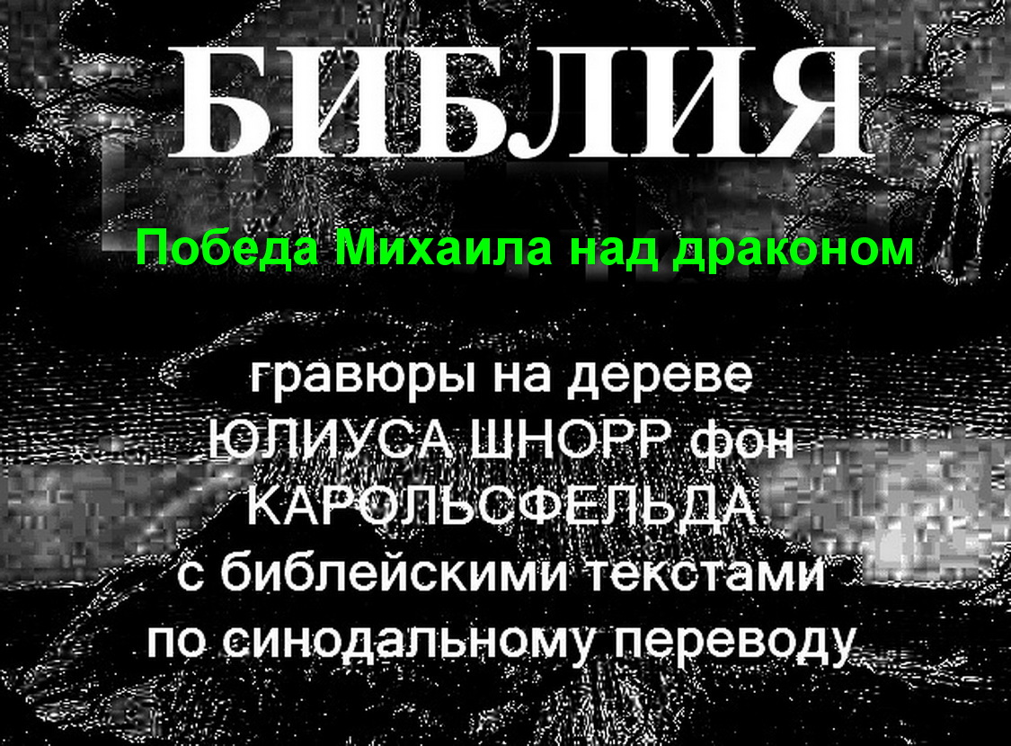 Библия, в иллюстрациях, Победа, Михаила, над драконом, Юлиус Шнорр, Карольсфельд, Гравюры, на дереве, религия, по синодальному, переводу, про библию, религиозный, вера,
