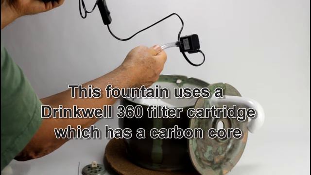 This medium sized ceramic pet drinking fountain with a recessed lid and a faucet spout filters and aerates continuously moving water to keep it much fresher than standing bowl water. Kitty can drink out of the lid or lick the falling water. A safe low voltage pump presses the water in the bowl through a charcoal filter and up through the faucet. This fountain's lid is recessed, making it difficult for even an rambunctious cat to dismantle the fountain. Add to this a pinned cover for the backflow area and you have a dismantle-proof cat fountain. Our fountains have three filters. The first filter is an easy to clean stainless steel mesh placed in the backflow opening to catch larger debris like hair and food. The second filter is an optional foam filter around the pump, keeping the pump cleaner longer. For the third filter, you have your choice of housing for the Drinkwell 360 filter and one cartridge or Ebi’s refillable Bio Filter with one filter media bag and charcoal fill. The Drinkwell is easier since you just pop one cartridge out and another in; the Bio Filter is much more economical since you fill it with course grade aquarium charcoal. The tubing we use to connect pump with filter and the filter with the spout is a antimirobial beverage grade tubing. If you’d like a low voltage UV sanitizing lamp in addition, that possible too. The 1st filter - the mesh filter - can be secured if your cats decide to play with it. The 2nd and 3rd filters are well hidden in the bowl, easy to reach for you but not your pet - and simple to change. This fountain is equipped with a quiet, safe low-voltage pump, which can be powered either by battery or a wall power transformer. Unlike plastic pet fountains that develop cracks, this handcrafted drinking fountain is made of durable, nonporous dinnerware-safe glazed stoneware. Clay and glazes are certified non-toxic and made in the USA. Ceramic resists bacteria, commonly found on porous plastic surfaces. The fountain has just 5 parts - bowl, lid, lid insert, filter and pump -, enabling simple, thorough cleaning. Whether your kitty has an "attitude" or not, we have the solution! Your custom "Ebi" fountain can be: dismantle-proof for cats who have taken apart every fountain you've ever bought, "scoop"-proof for cats who make a waterpark out of other fountains. We do this and much more! Like fountains usable in a moving RV, equipped with battery, battery backup or auto-refill system. Our EBI pet drinking fountains are engineered for health, safety, durability and to be a beautiful addition to your home. And: the "Ebi" Fountain is handcrafted in the USA with certified safe materials. Visit us at http://ebifountains.com