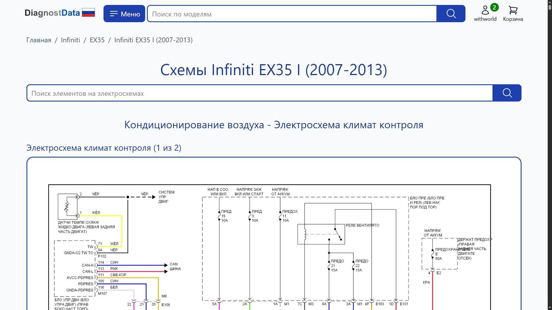 https://diagnostdata.ru/infiniti/ex35/i-2007-2013/ Электрохемы, распиновки, схемы электропроводки Infiniti EX35 I (2007, 2008, 2009, 2010, 2011, 2012, 2013 годов выпуска) 3.5L Схемы на русском языке для систем: Схемы Кондиционирование воздуха, Схемы Антиблокировочная система abs, Схемы Сигнализация, Схемы Блоки управления кузовом, Схемы Can шина, Схемы Вентилятор охлаждения, Схемы Круиз-контроль, Схемы Подогрев стекол, Схемы Электроусилитель руля, Схемы Двигатель, Схемы Фары и фонари, Схемы Точки подключения масс, Схемы Фары, Схемы Клаксон, Схемы Приборная панель, Схемы Освещение салона, Схемы Память, Схемы Системы помощи водителю, Схемы Блок предохранителей и реле, Схемы Центральный замок, Схемы Управление зеркалами заднего вида, Схемы Сиденья, Схемы Складная крыша/люк, Схемы Стеклоподъемники, Схемы Магнитола, Схемы Блокировка селектора, Схемы Стартер/генератор, Схемы Подушки безопасности, Схемы Коробка передач, Схемы Багажник, задняя дверь, лючок топливного бака, Схемы Предупреждение, Схемы Дворники и омыватели, и др.