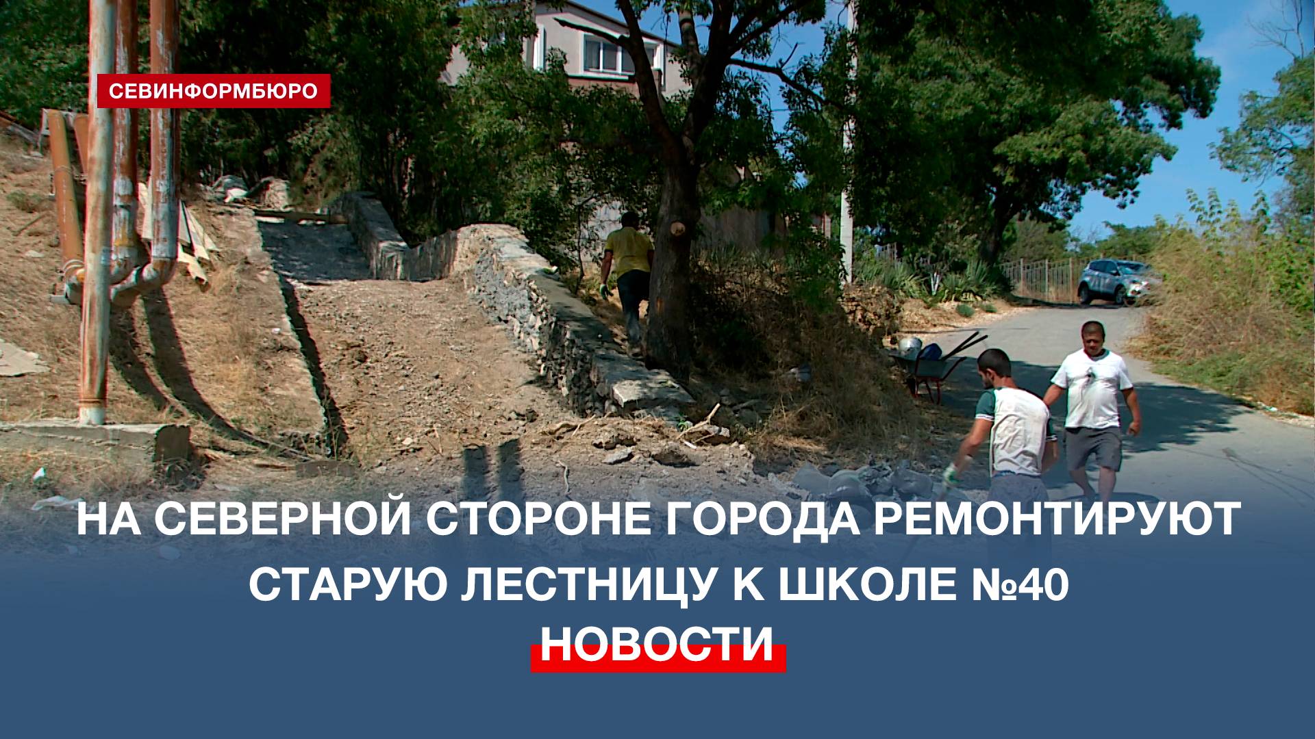 На Северной стороне Севастополя ремонтируют старую лестницу к школе №40