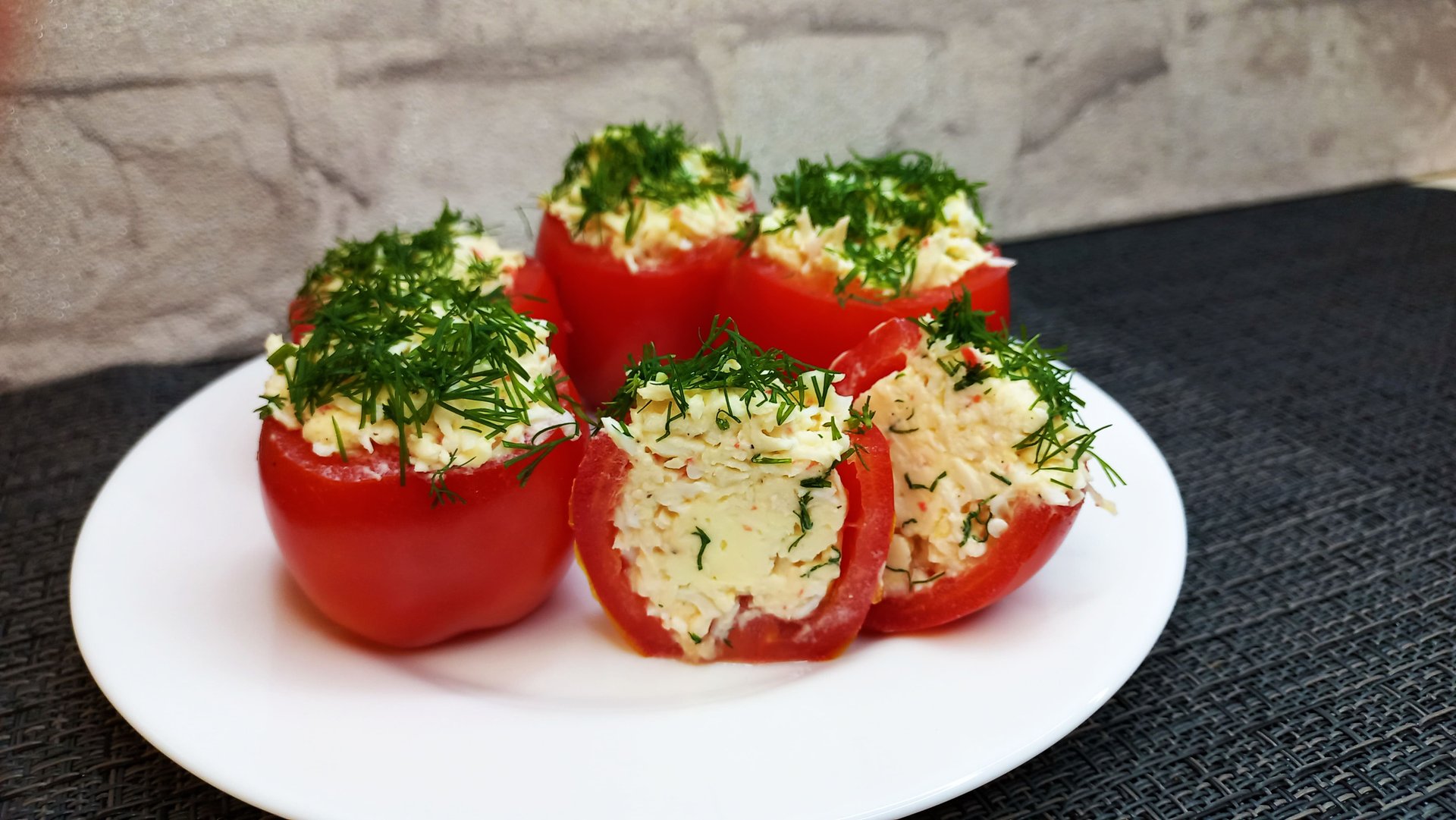 Рецепт на 5 средних помидор: - помидоры - 5 шт. - крабовые палочки - 6 шт. - яйцо - 1 шт. - чеснок - 1 зубчик - плавленный сырок - 1 шт. - соль, перец по вкусу - майонез - зелень для украшения #помидорыфаршированные #закускипраздничные #закуски #закускаизпомидор