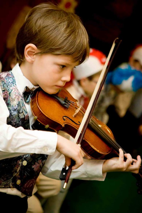 На скрипке учитель учит мальчика играть. Вот только для чего? Нарочно не придумать...