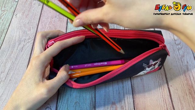 327601 Пенал JUNGER Белый котенок два отдела черный