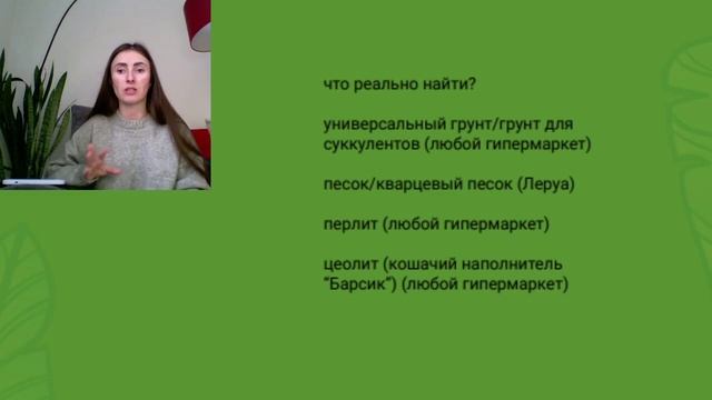 Выполните ДЗ: Приобретите необходимые компоненты для состава субстрата для бонсай. My Green Decor: ваш гид по миру комнатных растений Добро пожаловать на канал My Green Decor, где я, Надежда Юхно делюсь своей страстью к комнатным растениям и домашнему декору. Независимо от вашего уровня опыта в растениеводстве, на этом канале вы найдете все необходимое для создания пышного и здорового зеленого оазиса у себя дома. Надежда представляет обзоры цветов, фитодизайн и озеленение, чтобы помочь вам: Выбрать неприхотливые комнатные растения для начинающих Ухаживать за цветами и растениями Создавать уютный интерьер с помощью растений Наслаждайтесь эксклюзивными обзорами коллекции Надежды, где она демонстрирует свои любимые комнатные растения и делится секретами их ухода. Вы также найдете подробные руководства по: Пересадке комнатных растений Озеленению квартиры Созданию школы фитодизайна My Green Decor — это не только источник информации, но и место для вдохновения. Надежда делится советами по созданию уютной и стильной атмосферы в вашем доме с помощью растений.